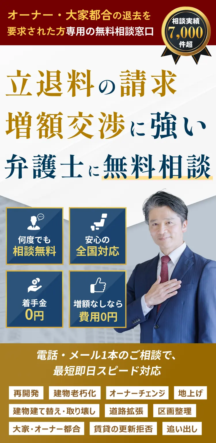 立ち退きに応じる場合、立ち退き料を増額できる可能性がありますので、弁護士にご相談ください。