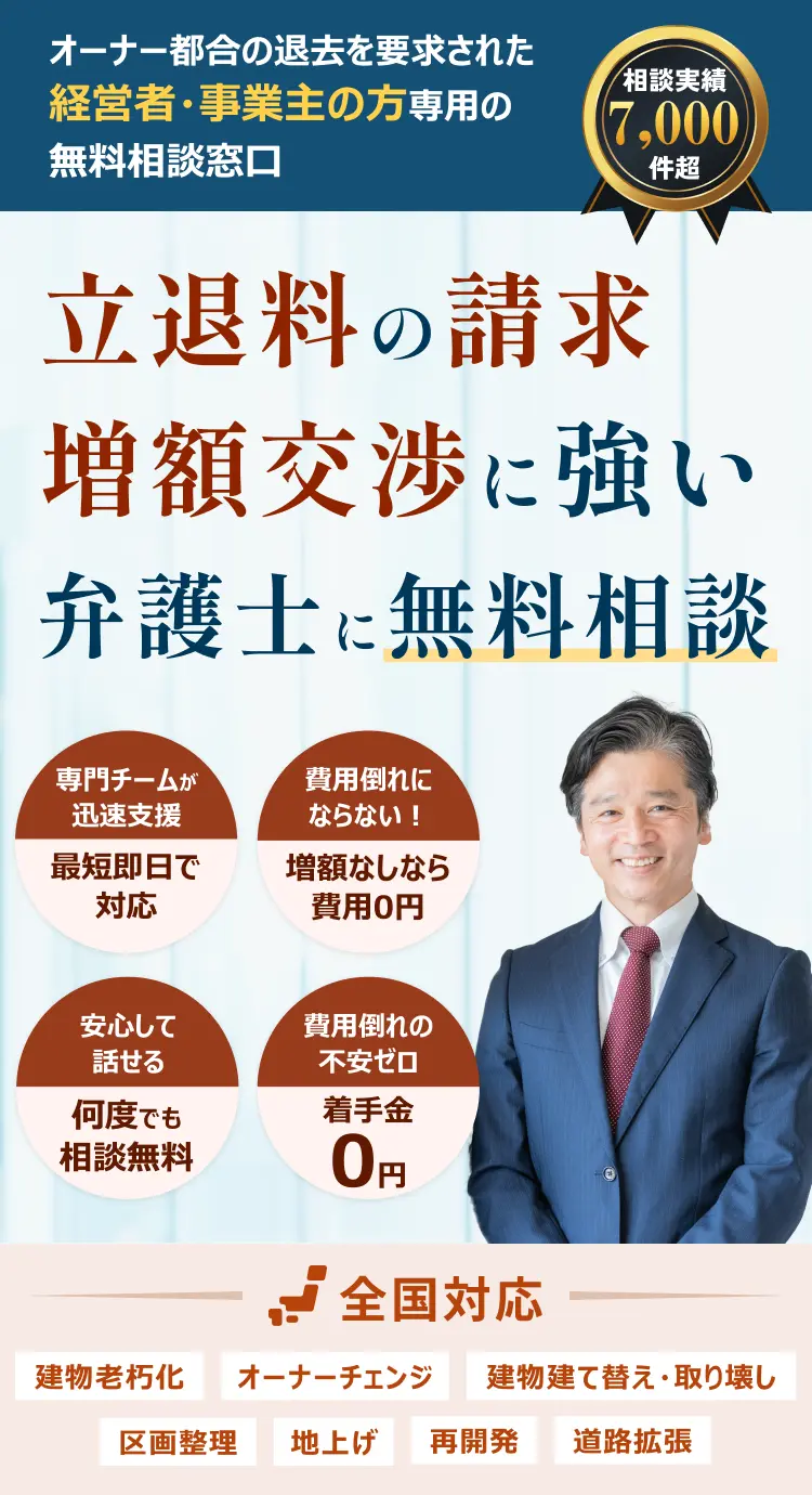 立ち退きに応じる場合、立ち退き料を増額できる可能性がありますので、弁護士にご相談ください。