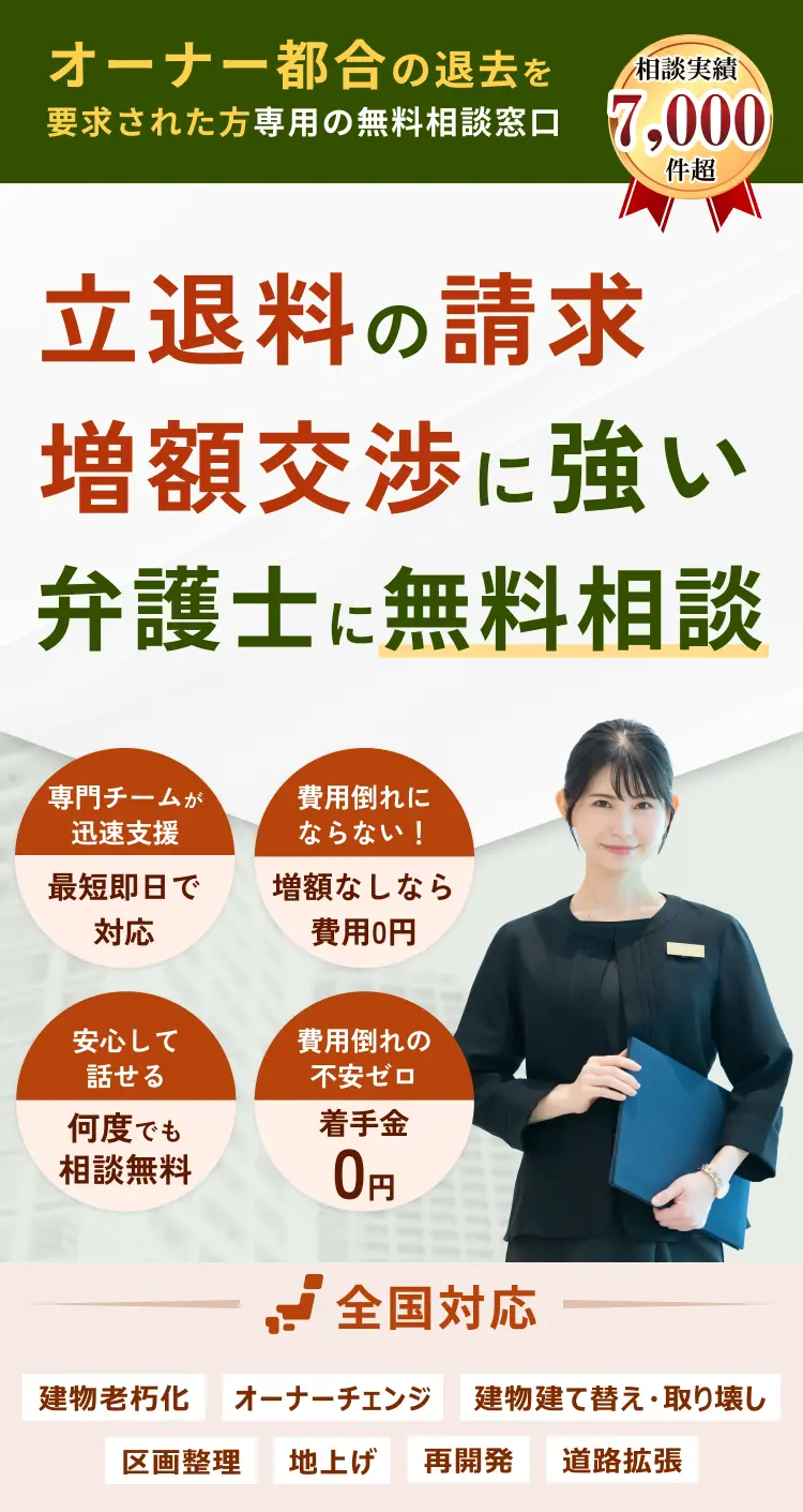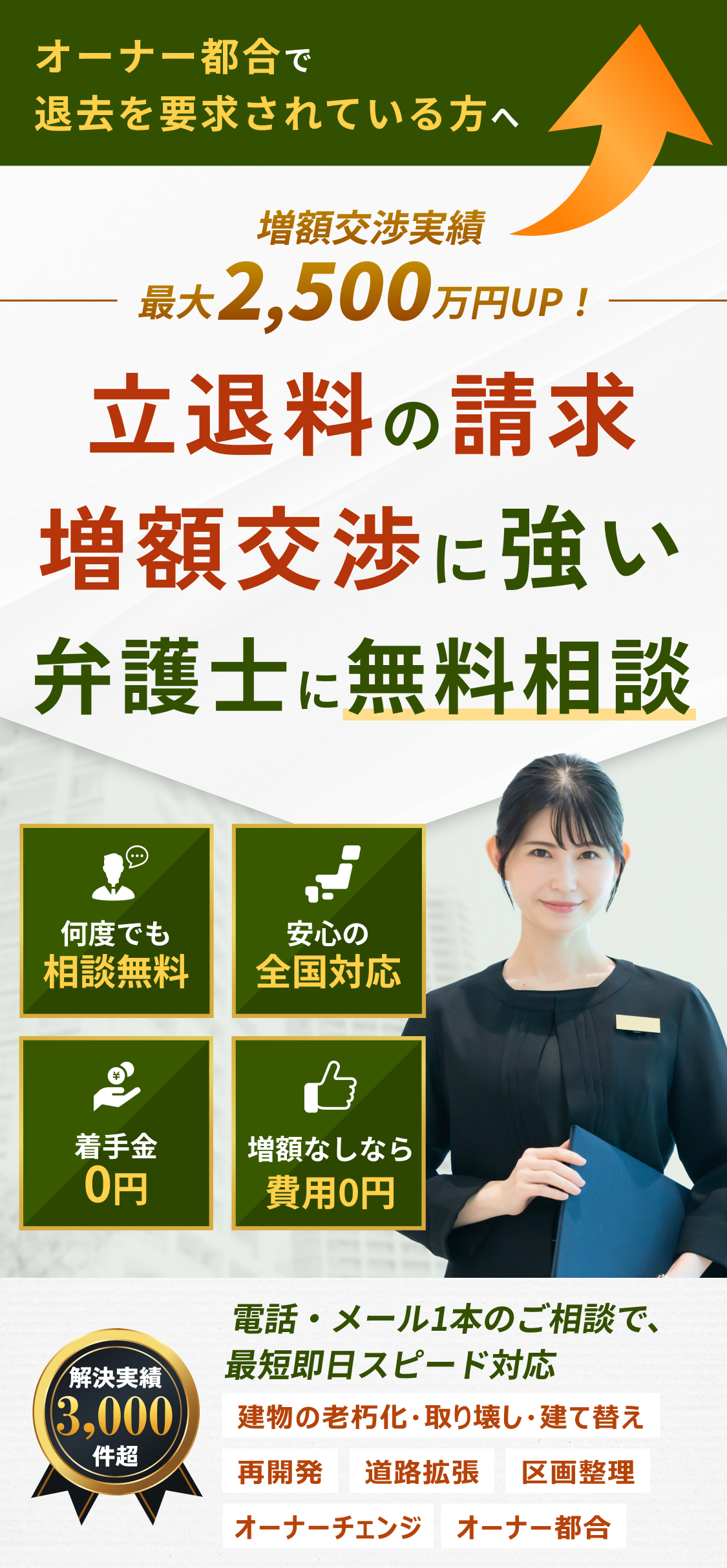 立ち退きに応じる場合、立ち退き料を増額できる可能性がありますので、弁護士にご相談ください。